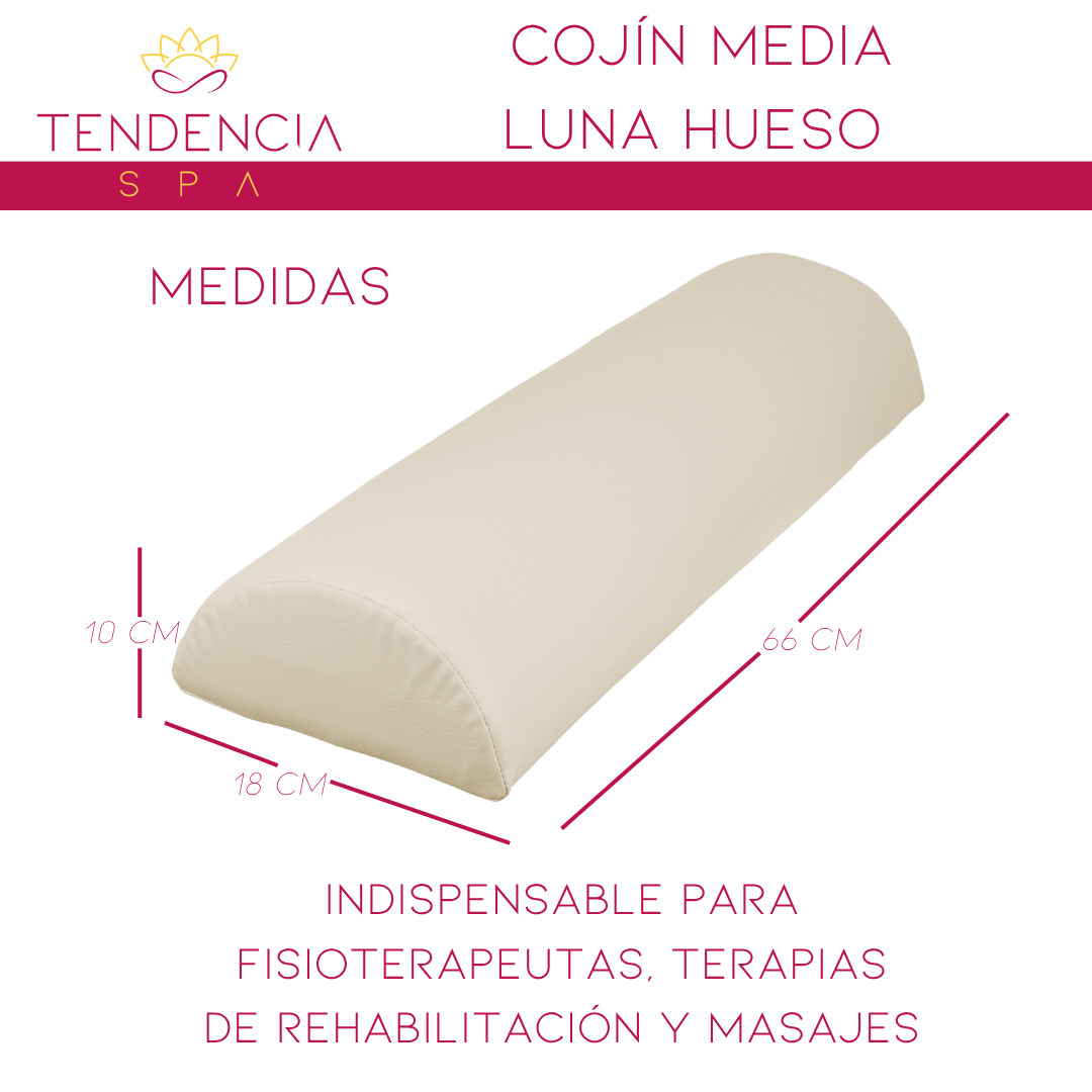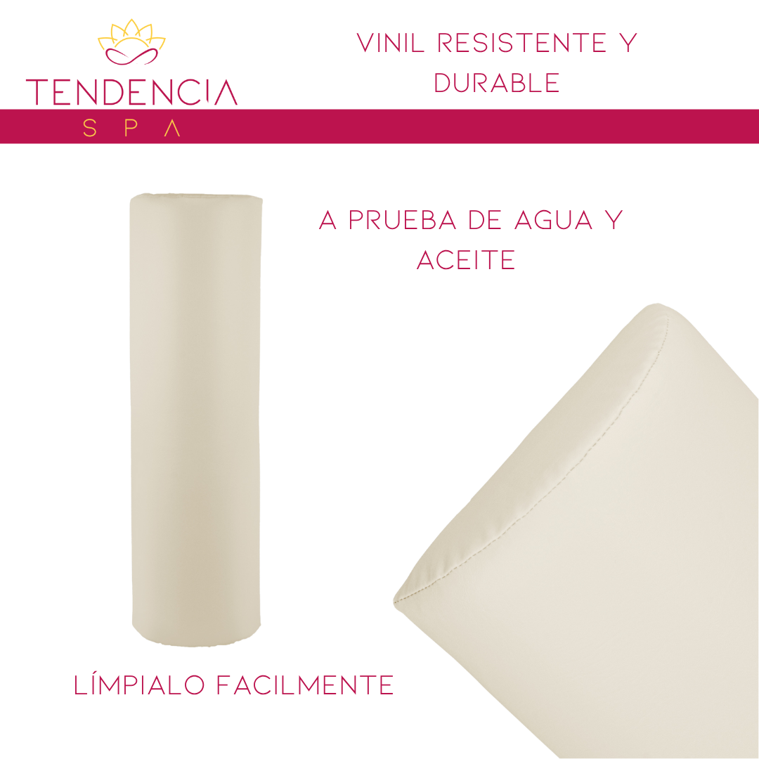 Cojín mitad cilindro para cama de masaje en color blanco, también conocido como de media luna para cama de masaje. Indispensable para fisioterapeutas y terapias de rehabilitación y masajes. Fabricado en vinil suave pero al mismo tiempo resistente, es poliuretano-PU impermeable que le garantiza una larga vida al cojín. A prueba de agua y aceite por lo que puede limpiarse fácilmente.